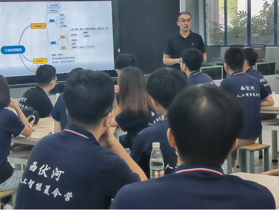 姚小强为夏令营全体同学介绍了智能制造学院的相关基本情况,并带领全体同学分别参观了三维扫描成型实验室、金属3D打印实验室、五轴联动加工车间、精密车削车间及精密检测中心,他还安排全国职业技能大师王泽民、王文景、周清卿、王忠义及陈亚岗现场指导夏令营学生进行相关实验与实践。