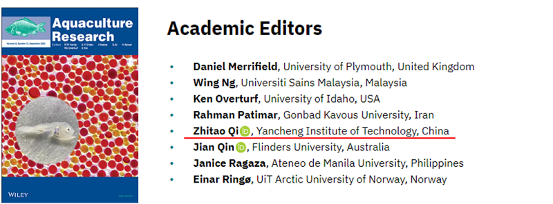 海生学院齐志涛教授受聘担任Aquaculture Research的学术编辑(Academic Editor)