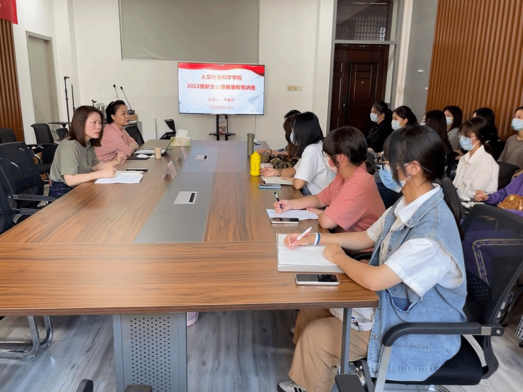 为进一步提高新生的心理健康素质,帮助新生做好初入大学的心理调适,9月18日,人文学院在希望大道校区仁和楼A302会议室采用线上线下相结合的方式举办新生心理健康教育讲座。本次讲座邀请了真人赌博游戏_澳门赌博网-app*官网心理健康中心主任韦春华主讲。讲座由人文学院党总支副书记姚爱华主持,新生辅导员及全体2022级新生参加。