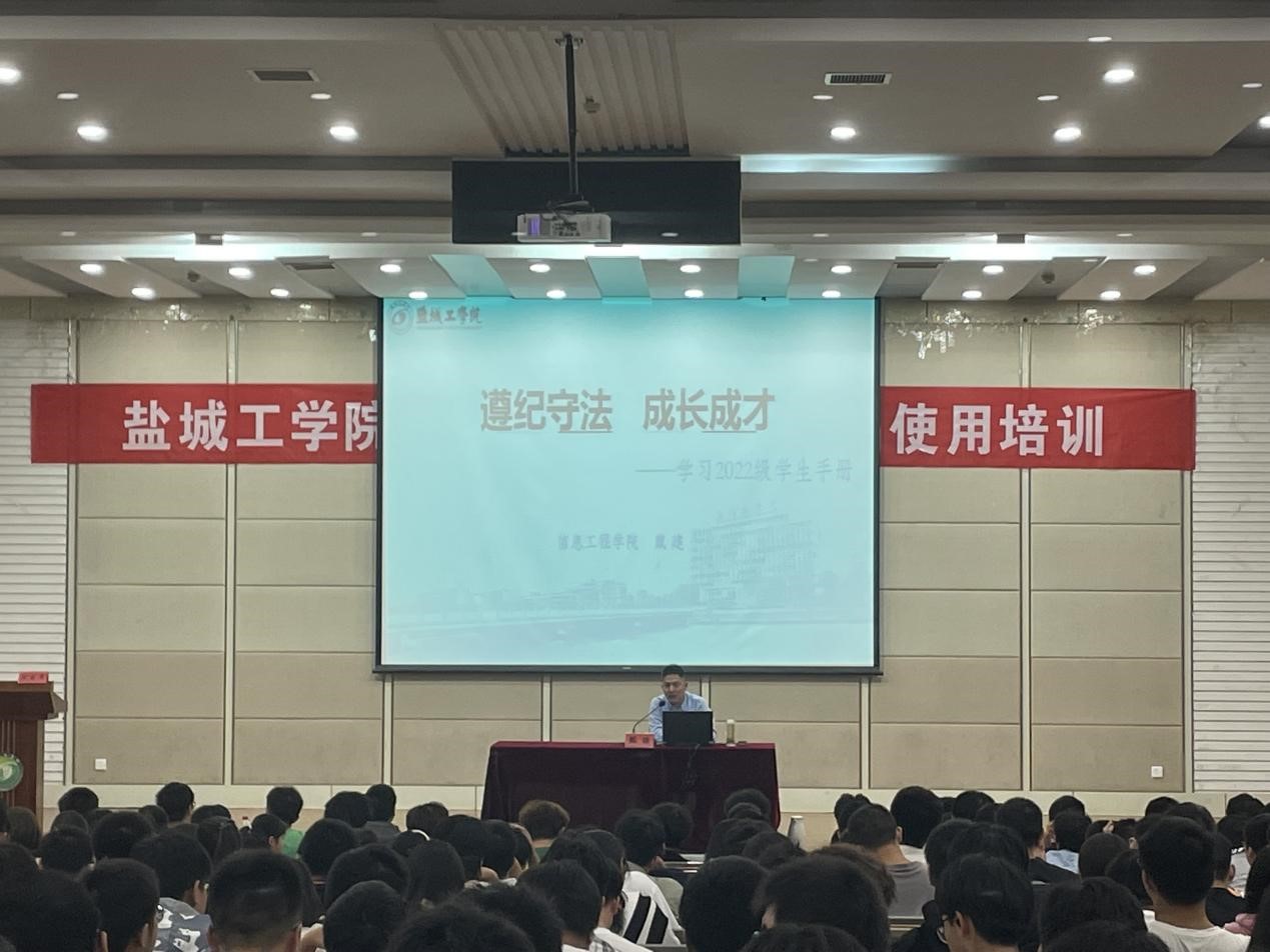 为让2022级新生更好适应真人赌博游戏_澳门赌博网-app*官网学习生活,9月25日,信息学院在北校区化工楼报告厅开展《学生手册》专题学习,近500名新生参加活动。会议由信息学院党委副书记戴建主持。
