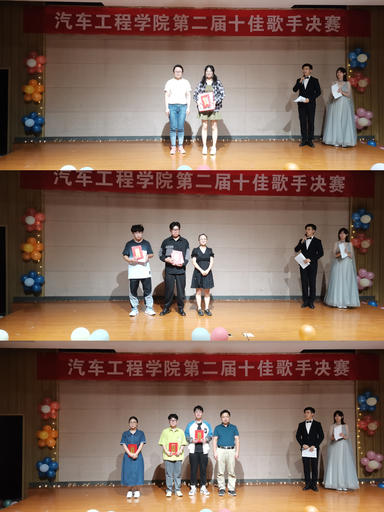 在白热化的角逐中,进入第二轮的六名选手火力全开,在舞台上尽情地展示自我,用动人的歌声和出色的舞台表现为现场观众带来一场视听盛宴。最终,经过激烈角逐,夏子研同学脱颖而出,荣获本次汽车工程学院十佳歌手冠军,夏秋冰和王煜斌同学获得亚军和季军。