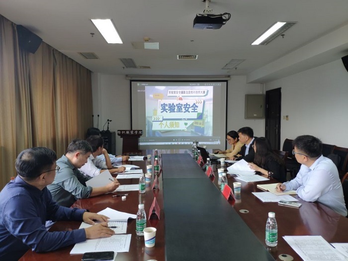 9月30日下午,“实验室安全摄影及宣传片创作大赛”终评评审会在希望大道校区纺织服装学院会议室召开,是真人赌博游戏_澳门赌博网-app*官网第二届实验室安全文明月主题活动之一。实验室建设与设备管理处处长孙爱东、土木工程学院院长吴发红、纺织服装学院院长王春霞、实验中心分管院长和工作人员参加评审活动。