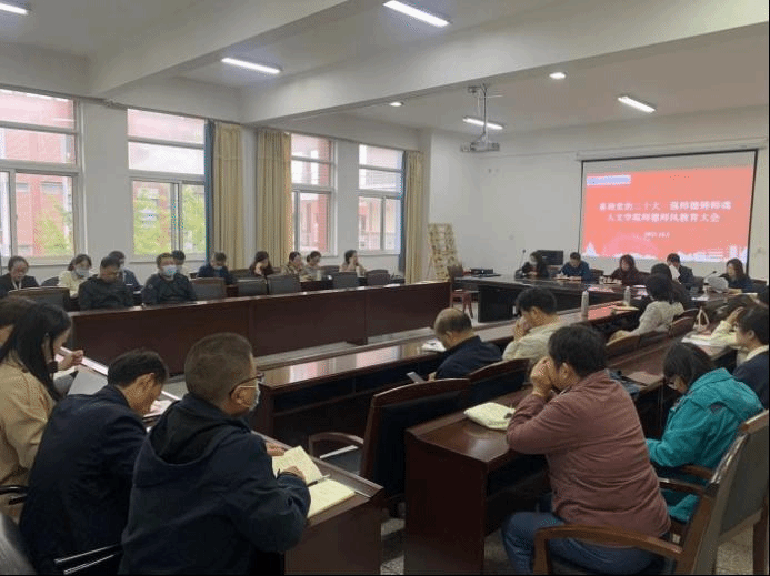 为进一步加强学院师德师风建设,提高教师思想政治素养和理论素养,10月5日下午,人文学院在希望大道校区仁和楼A304开展“喜迎党的二十大 强师德铸师魂”师德师风专题教育。会议由学院党总支书记何登溢主持,学院全体教职工参加。