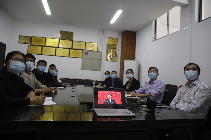 10月16日上午10时,海生学院理论学习中心组成员、党支部书记、党员师生代表、学生团员代表等近百人集中观看了中国共产党第二十次全国代表大会开幕会直播。