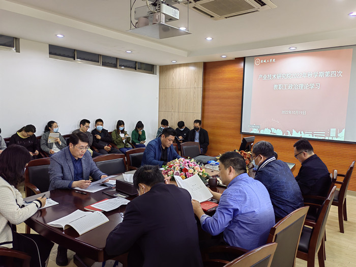 10月19日下午,产业技术研究院在北校区知达楼AE209会议室组织开展2022年秋学期第四次教职工政治理论学习。院党总支副书记、纪检委员崔振虎主持会议,研究院全体教职工参加。