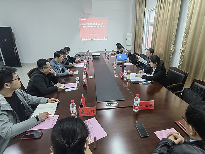 副院长姜瑞雨作题为《学习贯彻习近平总书记在中国共产党第二十次全国代表大会上的重要讲话精神》的重点发言,他结合自身学习和工作指出,作为教育工作者,我们要始终牢记习近平总书记嘱托,扎根科研,推动高校自身发展和区域经济发展相结合,以实际行动贯彻落实党的二十大精神,当好地方区域经济全面发展的参与者、参谋部和后备队,奋力谱写新时代新征程教育改革发展新篇章,为全面推进中华民族伟大复兴贡献智慧和力量。陈立根作题为《学习二十大讲话精神》的重点发言,他提出作为高等教育工作者和一线科技工作者,我们要把思想和行动统一到党的二十大精神上来,聚焦党的二十大描绘的宏伟蓝图,奋勇攻关。副院长史宙帆、分析测试中心副主任陈林、院党政办公室主任岳红印分别结合自身学习和工作作了补充发言。会议现场观看了党的二十大报告精神专家解读视频。