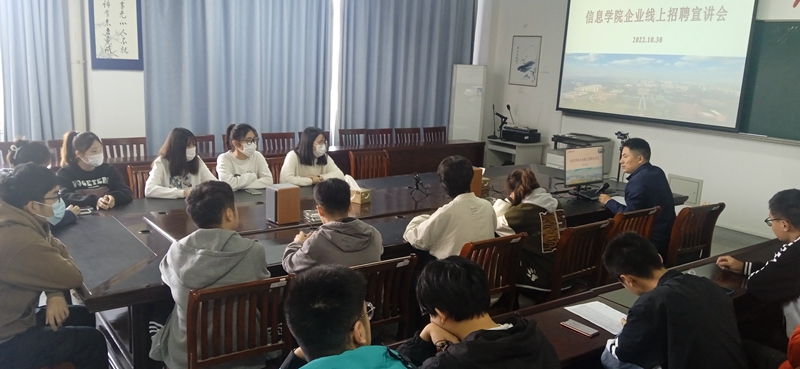10月30日上午,信息学院在南校区怀德楼B410会议室召开企业线上招聘宣讲会,邀请南京欣网通信科技股份有限公司、苏州酷豆物联科技有限公司、海隆软件(昆山)有限公司、京颐大健康产业发展(江苏)有限公司校园招聘负责人进行线上招聘宣讲。宣讲会由信息学院党委副书记戴建主持,2019级学生参加会议。