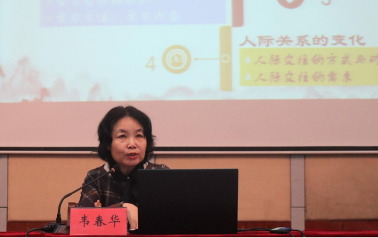 韦春华在讲座中以“一起向未来”为主题,通过从发展目标的变化、生活环境的变化、学习方面的变化、人际关系的变化四个角度分析新生刚入学可能会出现的心理健康问题,重点强调如何更好的自我调节、适应新的环境,同时提出了增强心理调适能力的方法:事先应对,建立合理认知、保持积极心态,善用社会支持,学会心理调试,适当适应心理防御机制。她指出,新生成长发展规划要和职业生涯规划相结合,要符合自身发展方向,坚定目标方向的指引。此外,韦春华引用马克思主义爱情观,分析当代大学生恋爱现状,建议大学生理性看待恋爱问题,树立正确的恋爱观。