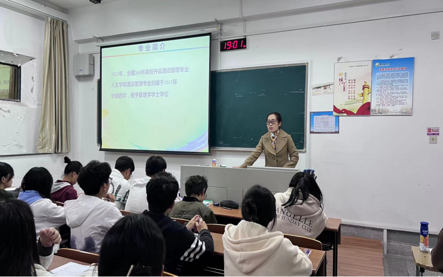 11月3日晚,人文学院在北校区知行楼301、306、310教室面向2022级新生开展专业认知教育讲座。此次讲座分别由汉语言文学专业系主任蒋继华、酒店管理专业系主任陈力以及旅游管理专业教师张玉玮主讲,全体2022级新生及新生辅导员参加。