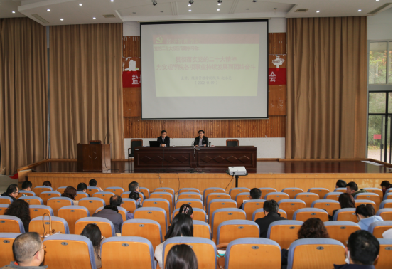 11月9日,经管学院在仁和楼报告厅举办党的二十大精神专题学习会,组织全院教职工学习贯彻习近平总书记代表第十九届中央委员会在党的二十大上作的题为《高举中国特色社会主义伟大旗帜为全面建设社会主义现代化国家而团结奋斗》报告精神。院党委书记卜树春主持会议,院党委委员、院长赵永亮讲党课。