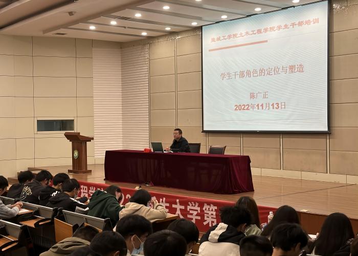 11月13日晚,土木工程学院在建军东路校区化工楼报告厅举办2022级新生图书馆入馆教育、学生干部的角色定位与塑造专题讲座。讲座由图书馆副馆长、研究馆员李明和土木工程学院党委副书记陈广正主讲,2022级新生辅导员及全体新生参加,其中希望大道校区建筑学专业新生通过腾讯会议线上参加了本次入学教育。