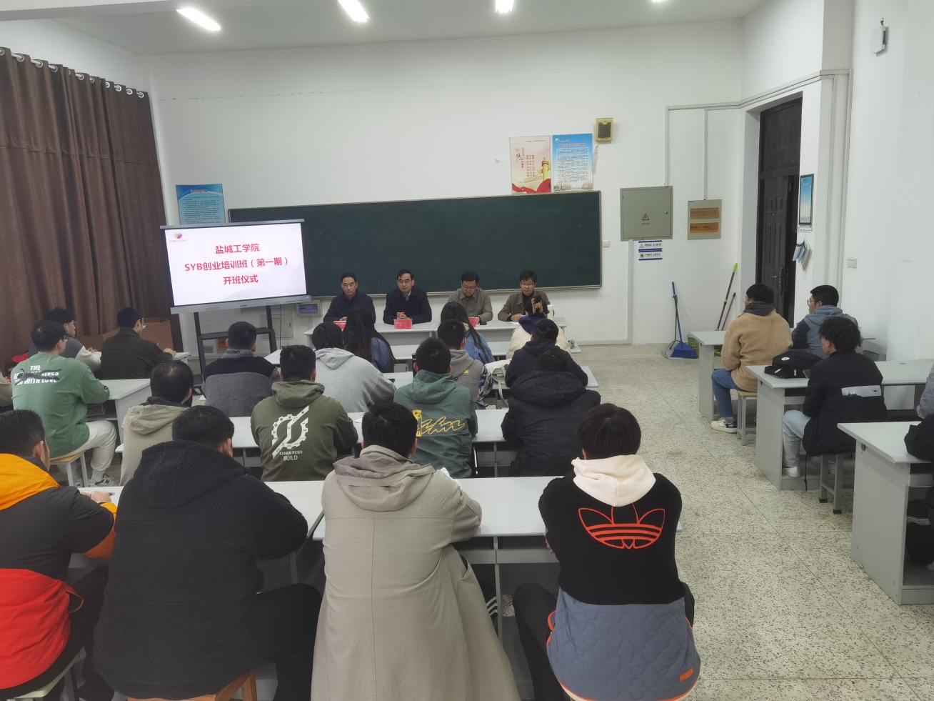 11月20日上午,由汽车工程学院承办的真人赌博游戏_澳门赌博网-app*官网第一期SYB创业培训班在机械馆B407成功开班。盐城开放大真人赌博游戏_澳门赌博网-app*官网长陈志华,真人赌博游戏_澳门赌博网-app*官网教务处副处长王照宇,汽车工程学院副院长熊新出席了开班仪式,培训班班主任林鑫焱以及29名培训班学员参加。