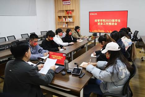 12月6日晚,经管学院以线上线下结合形式举办2023届毕业生就业工作推进大会,学院党委书记卜树春作就业动员讲话和就业求职指导。线下会场设在仁和楼502会议室,学院学工办、团委负责人,毕业班辅导员参加,其他2023届学生通过腾讯会议线上参会。