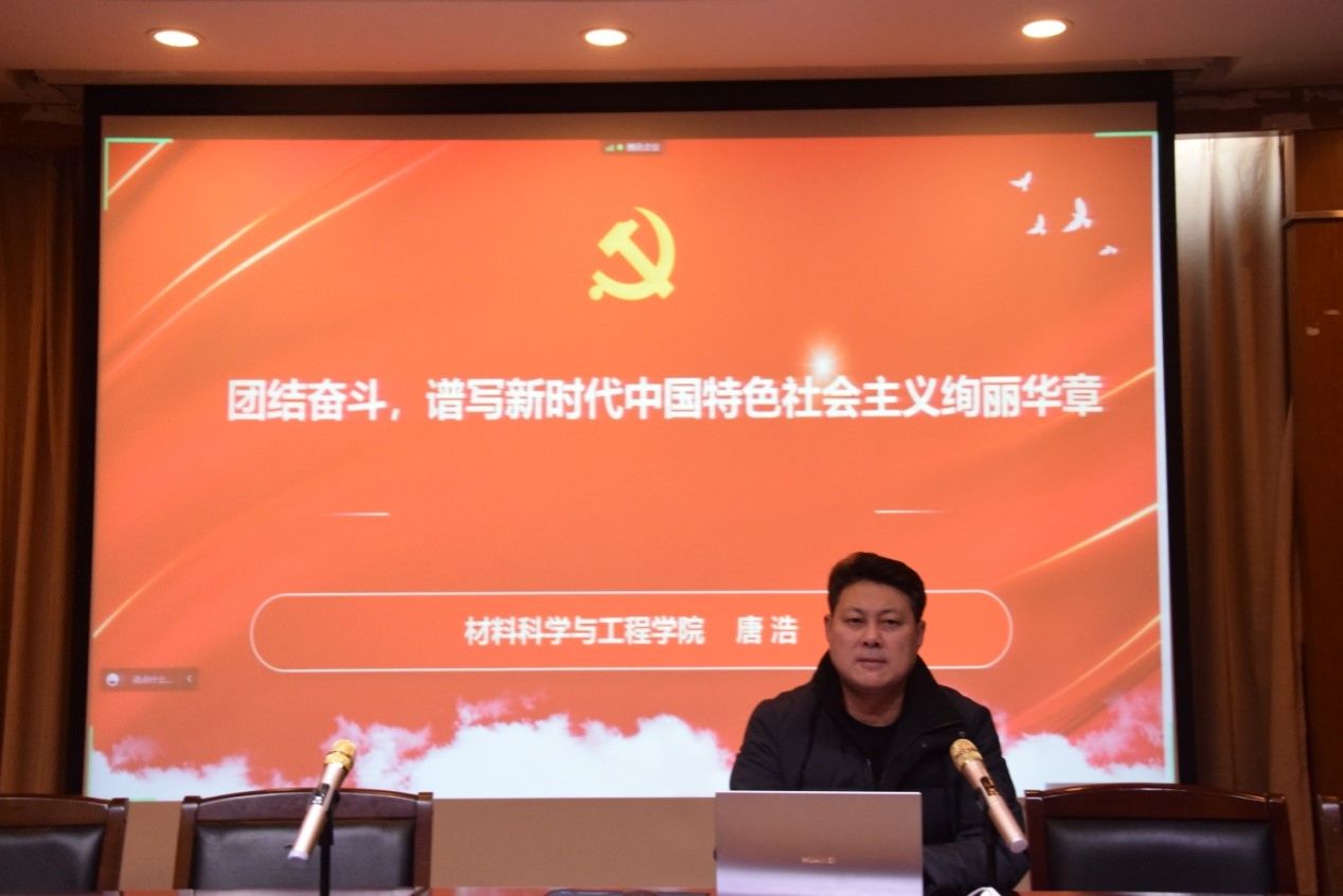 12月8日晚,在北校区化工楼重点实验室报告厅,真人赌博游戏_澳门赌博网-app*官网宣讲团成员、材料学院党委书记唐浩作题为“团结奋斗,谱写新时代中国特色社会主义绚丽华章”的宣讲报告。学生党员、学生会主要干部、班级团支书、积极分子等300余人参加。