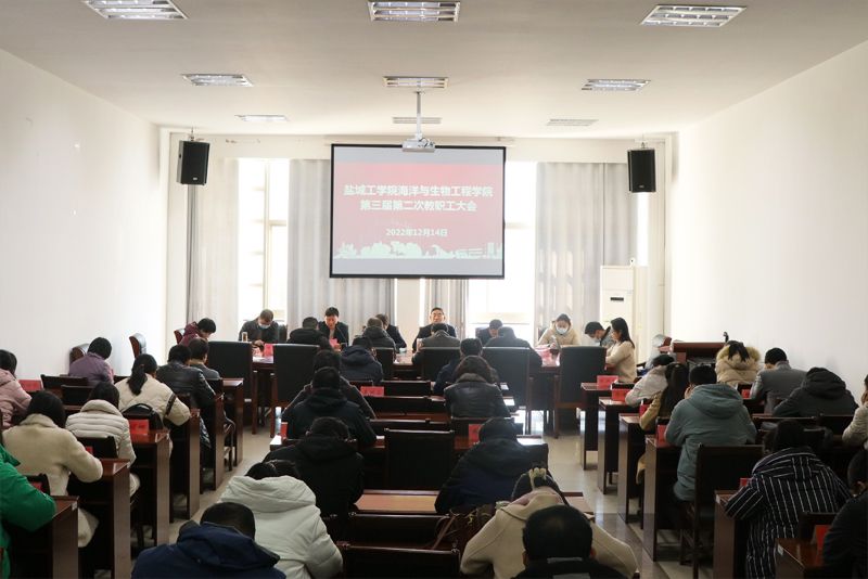 12月14日下午,海生学院第三届第二次教职工大会在北校区学院会议室召开。校工会主席谢毅敏应邀到会致辞,学院党总支书记高留才主持会议,海生学院全体教职工暨工会会员参加。