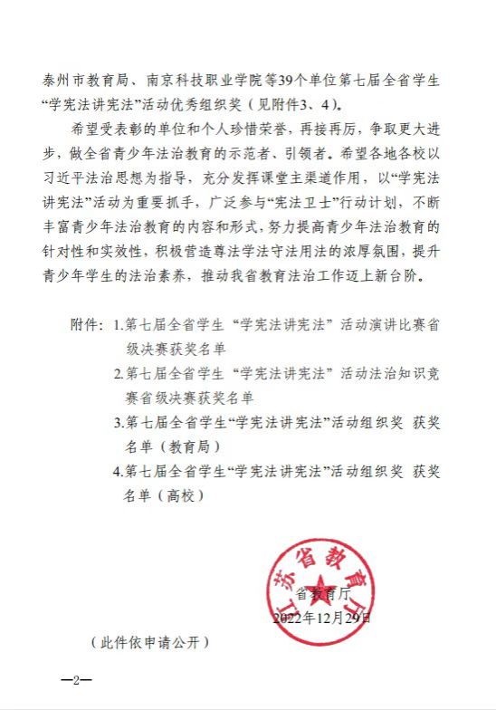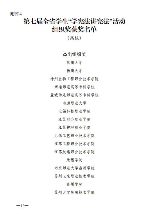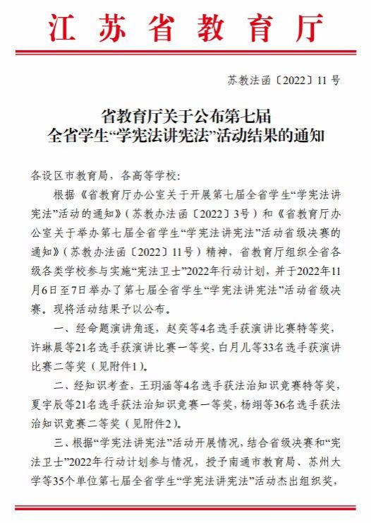 近日,省教育厅公布了第七届全省学生“学宪法讲宪法”活动评选结果(苏教法函〔2022〕11号 ),真人赌博游戏_澳门赌博网-app*官网荣获高校组“杰出组织奖”,这是真人赌博游戏_澳门赌博网-app*官网荣获第六届全省学生“学宪法讲宪法”活动高校组“优秀组织奖”之后再次获得组织奖。