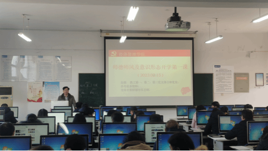 2月15日,经管学院举办师德师风及意识形态开学第一课,教工第一、二、三党支部全体党员、各专业系教师、专兼职辅导员参加。