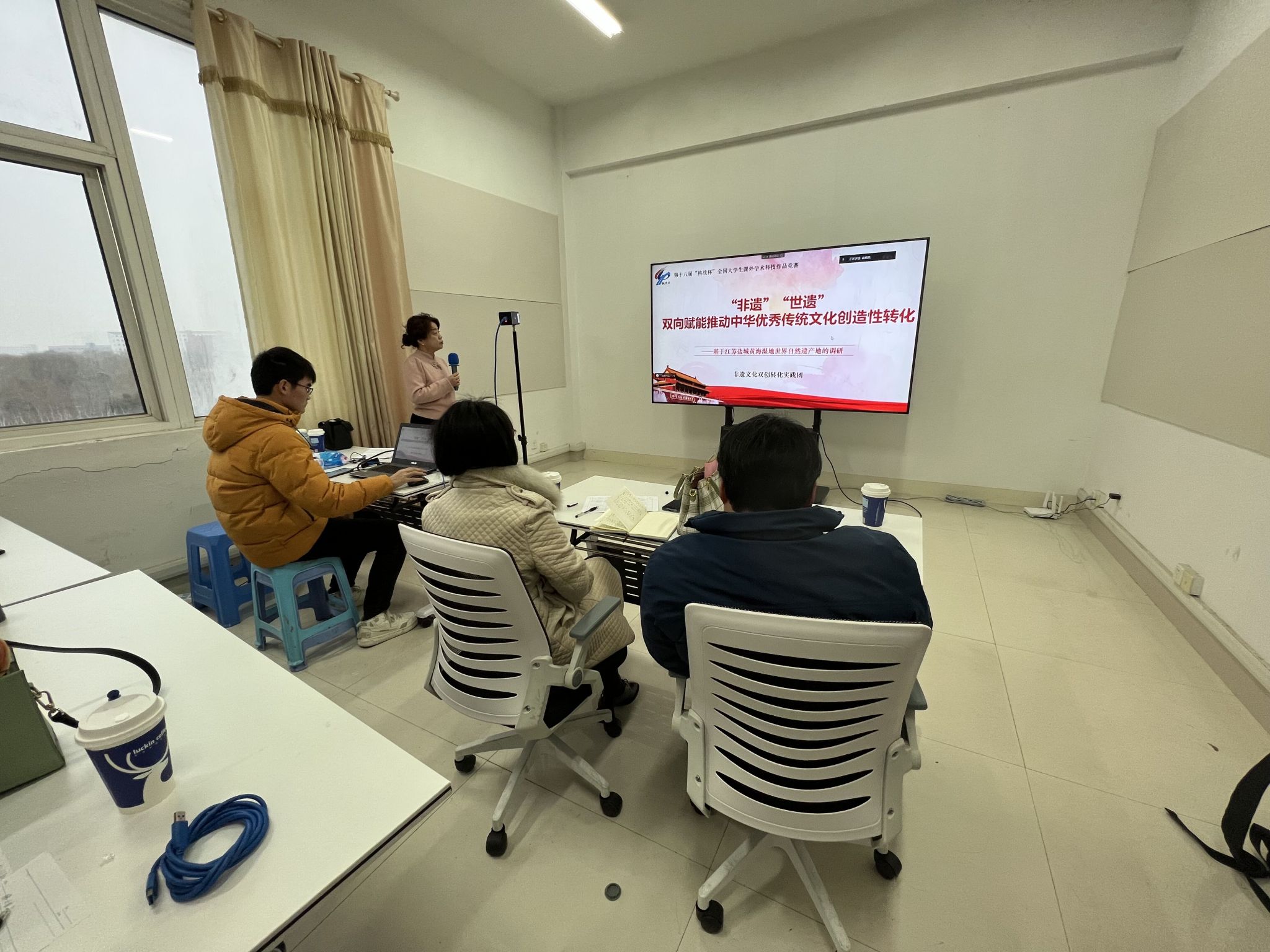 专家指导后,杨秀丽介绍了此次“挑战杯”全国大学生课外学术科技作品的组织、评审流程,对专家评审的标准作了说明,同时介绍了“挑战杯”备战省赛、国赛的后续工作安排。她指出,各项目都已储备了一定的支撑材料,要继续根据专家评审建议完善作品。她表示,团委、学院和指导老师将凝聚合力,共同为备赛的师生提供全方位支持,期待2023年“挑战杯”比赛取得优异成绩。