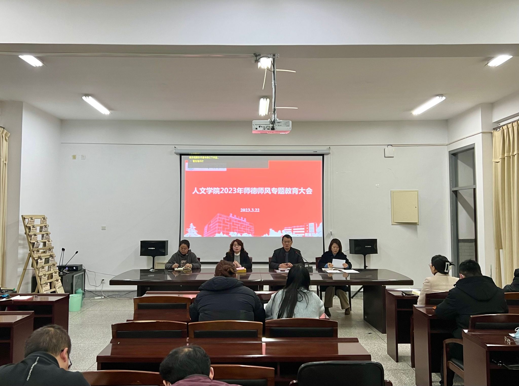 3月22日下午,在南校区仁和楼A304会议室,人文学院召开2023年师德师风专题教育大会。学院党总支书记何登溢主持,全体教职工参加。