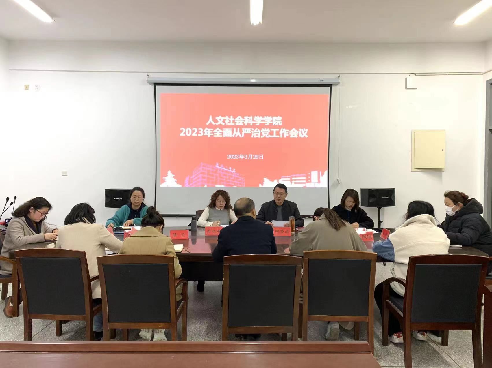 3月29日下午,人文学院在希望大道校区仁和楼A304会议室召开全面从严治党工作会议。学院党总支书记何登溢主持会议,学院领导班子成员、支部书记、各科室负责人、专业系主任参加。