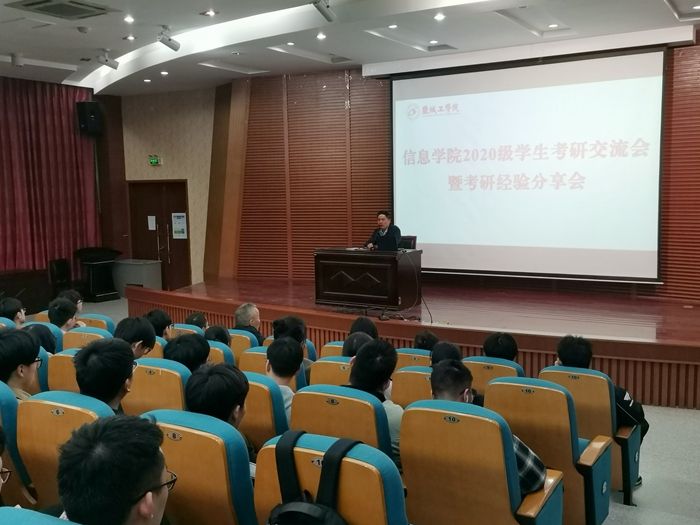为让大学生充分认识考研形势,规划好考研学习安排,营造良好的考研学习氛围,4月25日晚,信息学院在南校区润美楼报告厅开展2020级学生考研交流会暨考研经验分享会。学院党委副书记戴建主持会议,学工办主任薛俊义、辅导员及2020级复习考研的近200名同学参会。