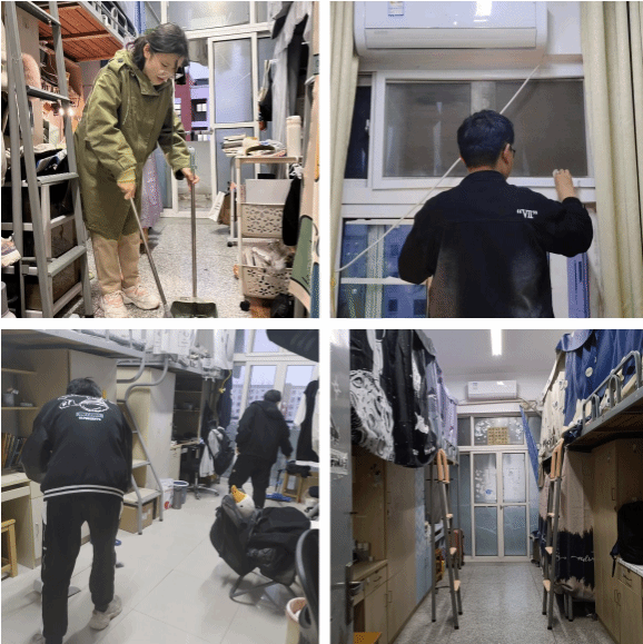数理学院、信息学院学生由各宿舍长带头,宿舍成员分工协作,对宿舍进行全面整理清扫。活动过程中,同学们充分发扬不怕脏、不怕累、不怕苦的精神,用实际行动为宿舍和学院教师办公环境的清洁贡献了自己的一份力量。临近五一假期,不少同学的课程处于期中考试和结课考试的关键节点,功课和作业繁重,但大家依然挤出课余时间一丝不苟地完成宿舍卫生任务,部分同学还用自己的艺术品装点宿舍,美化居住环境,营造良好学习和生活环境,促进集体宿舍和睦与温馨的氛围。