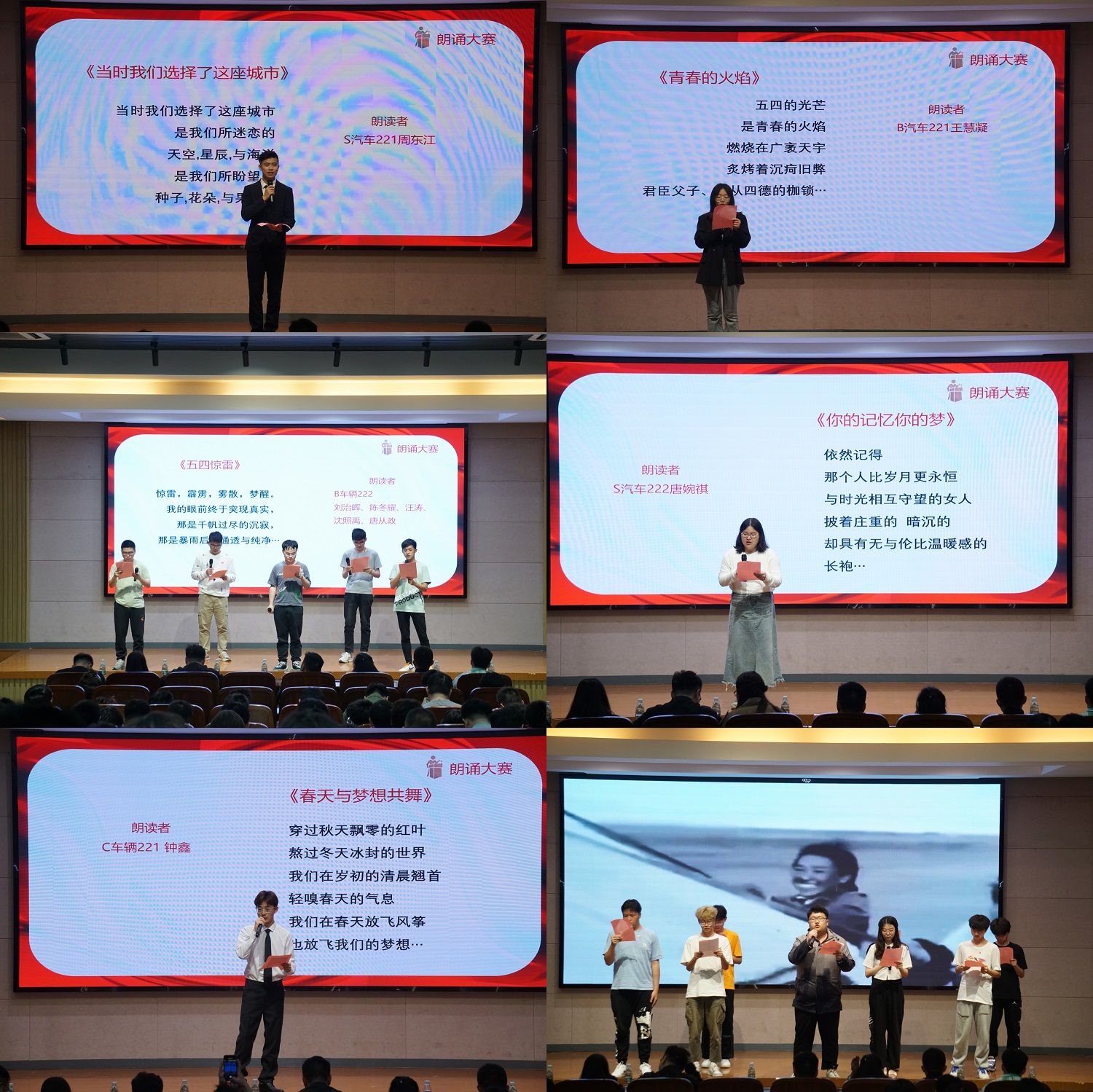 为加强以爱国主义为核心的民族精神教育,继承和弘扬民族优秀传统文化,丰富校园文化生活,5月4日晚,汽车工程学院在南校区机械馆报告厅举办“颂五四,赞青春”主题朗诵比赛。本次比赛邀请学院党总支副书记姜华,学工办、团委负责老师和全体专职辅导员担任评委,70余名选手参与。