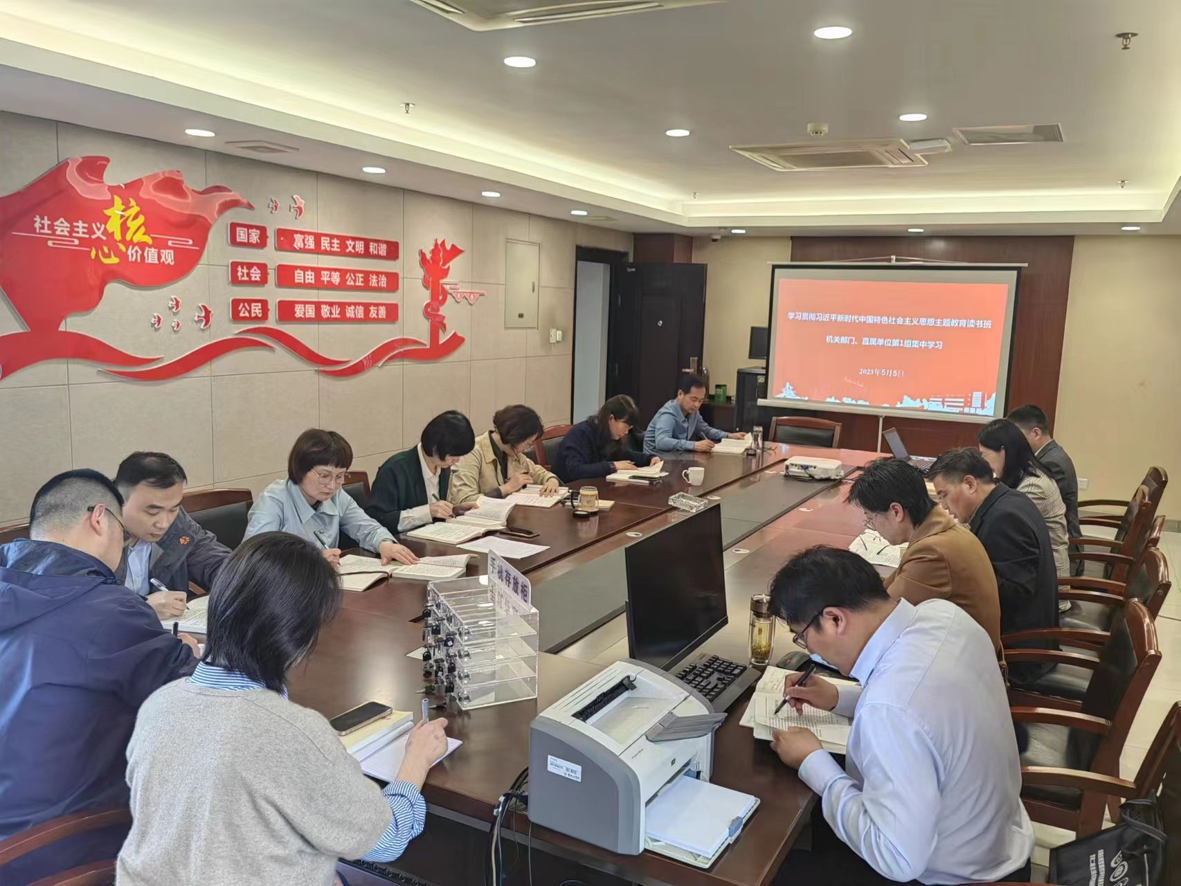 5月5日下午,在希望大道校行政楼630会议室,校学习贯彻习近平新时代中国特色社会主义思想主题教育读书班机关部门、直属单位第1组开展第三次集中学习研讨,重点学习《论党的自我革命》部分篇章。组长、人事处处长沈晓梅主持学习研讨会。真人赌博游戏_澳门赌博网-app*官网常委、宣传部长奚新国、纪委办公室主任陶应军旁听集体学习。