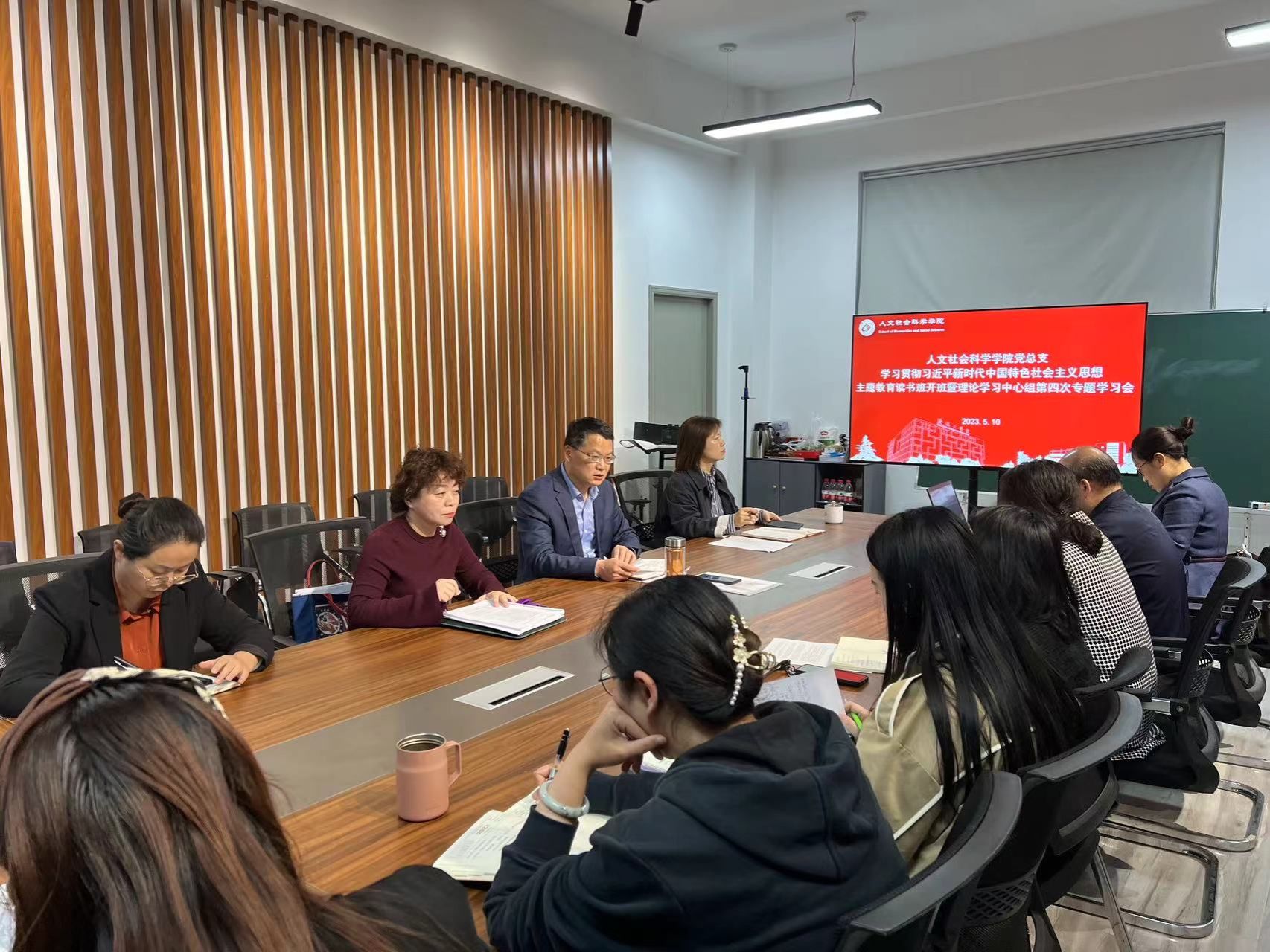 5月10日下午,在仁和楼A302会议室,人文学院党总支组织学习贯彻习近平新时代中国特色社会主义思想主题教育读书班开班暨理论学习中心组第四次专题学习会。会议由学院党总支书记何登溢主持,中心组全体成员参加。