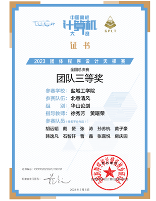 真人赌博游戏_澳门赌博网-app*官网信息工程学院经过选拔的20名队员,在学院教师黄曙荣、徐森、徐秀芳的悉心指导下积极组织训练,锻炼选手的分析问题和算法设计能力,提升队伍的竞争力和契合度,最终在本次赛事的线上比赛中取得佳绩。其中,“北巷清风”队在全国总决赛“华山论剑”组中荣获团队三等奖、江苏省团队二等奖,“代码力量”队荣获江苏省团队三等奖。同时,2020级计算机科学与技术专业戴赟、2020级人工智能专业张涛和2021级人工智能专业黄子豪三位同学荣获全国总决赛个人三等奖。