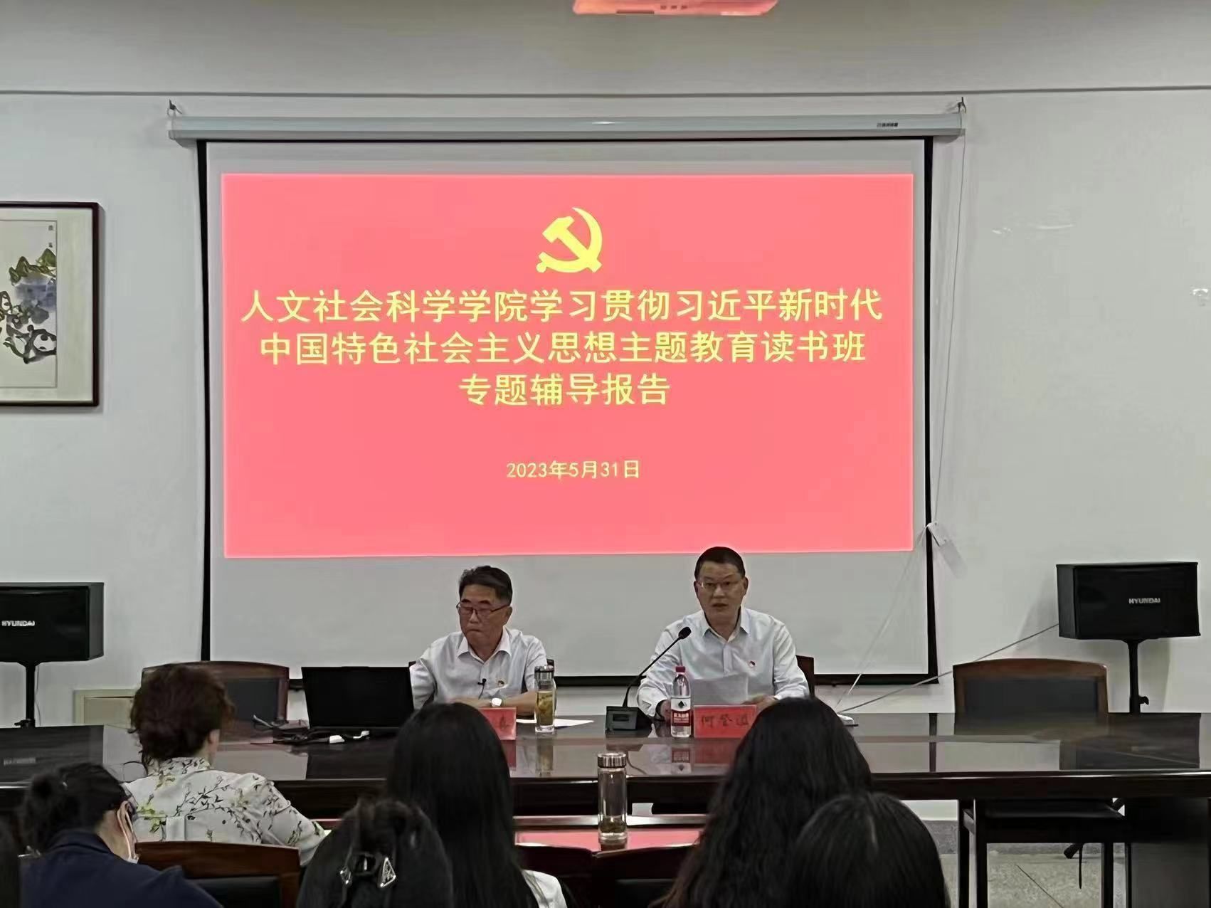 5月31日下午,人文学院在南校区仁和楼A304组织召开了学习贯彻习近平新时代中国特色社会主义思想主题教育读书班专题辅导报告会。会议由学院党总支书记何登溢主持,校关工委副主任徐报喜主讲。全体教职工和学生党员代表参加。