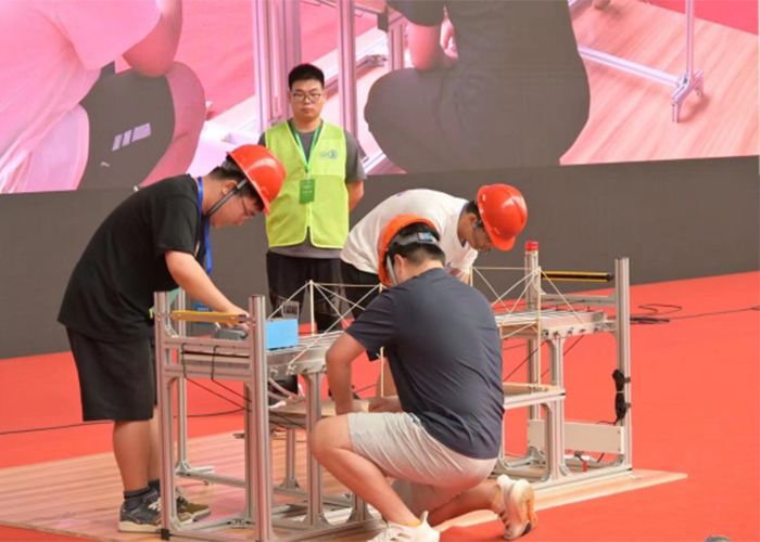 本次比赛吸引了来自全省36所高校的200余名师生(加载组共计63支队伍)参赛。本届加载组赛题以承受移动荷载和撞击荷载的桥梁为对象,通过在赛题中加入部分待定参数,赋予赛题真人赌博游戏_澳门赌博网-app*官网的灵活性,同时增加现场设计环节,强调对未来卓越工程师综合能力的全面要求。赛题模型复杂,要求学生制作一座两跨四车道桥梁(桥型不限),承受桥面移动荷载和桥墩撞击荷载,在确保结构安全的前提下,还需要对桥梁的变形进行定量控制。该赛题除了对结构方案的创新,制作一个细致的模型需要队员全力投入16小时以上,队员们在备赛过程中投入了巨大的脑力和体力。