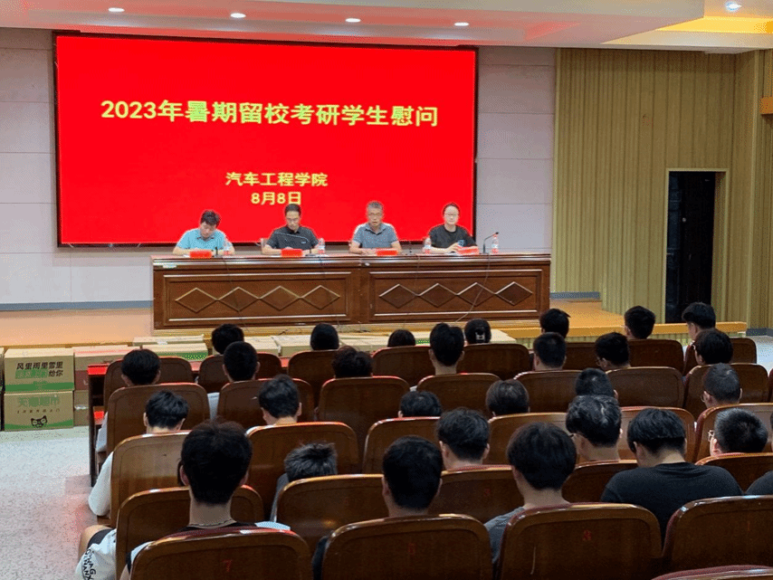 为激励学生坚定考研信心,保持学习热情,制定科学的考研备考计划,8月8日上午,汽车工程学院在机械馆报告厅开展考研学子暑期慰问活动。学院党总支书记杨军、副院长熊新、院长助理郑竹安、学工办负责人、2020级辅导员及全体在校考研学生参加了慰问活动。活动由党总支副书记姜华主持。