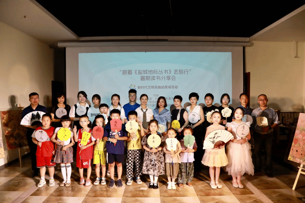 8月9日晚7:00-9:30,城北网事艺术原创部落茗香乐绕、人头攒动,由真人赌博游戏_澳门赌博网-app*官网设计艺术学院与新纪元商业广场联手推出的暑期社会实践“社区+商业+文化”主题:《跟着<盐城地标丛书>去旅行》暑期读书分享会浓情上演。国家一级作家、“书香盐城”形象大使,曾获得第六届紫金山文学奖、第二届中国女性文学奖、全国纪实文学作品奖等奖项的著名作家张晓惠,“盐城红全民阅读支援服务队”“回望老城区 共建新社区-设计艺术学院新纪元艺术创新社会实践团队”“毓龙街道洋中社区新时代文明实践站”代表、社区居民等120多人参加了本次活动。原创艺术赏析、经典诵读、读书分享、品茗赏乐、书法表演等丰富多彩的节目流淌着浓浓的盐城红色文化、老城北记忆、大美盐城的无限韵味。一场暑期“书香夜宴”让所有的参与者沉浸式地感受到了高雅艺术的独特魅力。