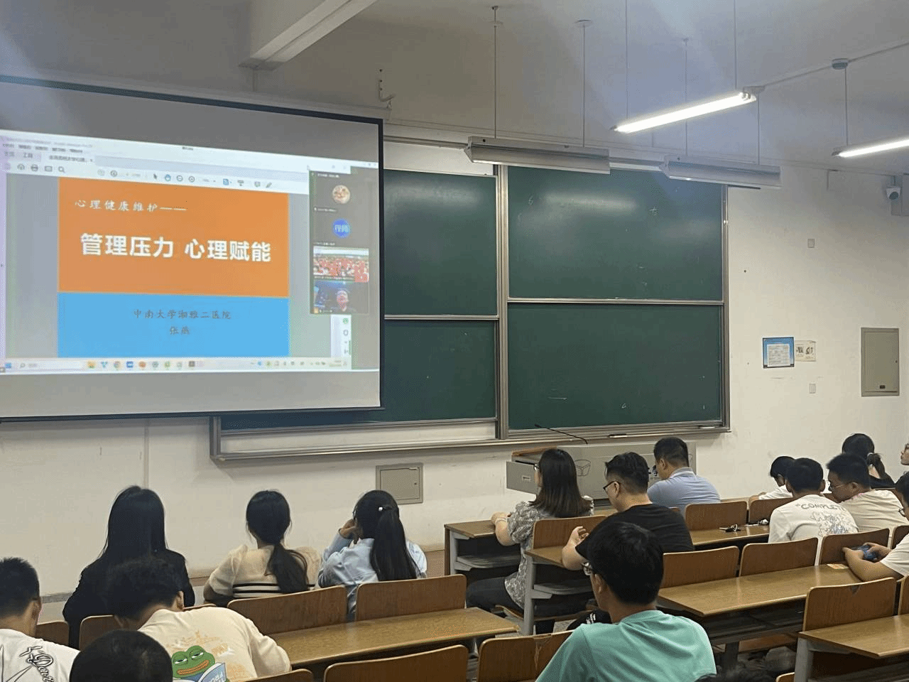 本次讲座通过在线视频的方式观看了中南大学湘雅二医院张燕专家真人赌博游戏_澳门赌博网-app*官网:“管理压力 心理赋能”的专题讲座。专家强调,要学会辨别常见的心理异常问题;区分积极压力与消极压力,要通过适当的抗压训练锻炼自身心理韧性;要改变认识事物的方式,通过积极的心理暗示,制定科学的目标管理,做到不求尽如人意,但求问心无愧。通过专家通俗易懂的讲解,学生对心理健康知识以及心理哨兵工作职责也有了更为明确深刻的理解。