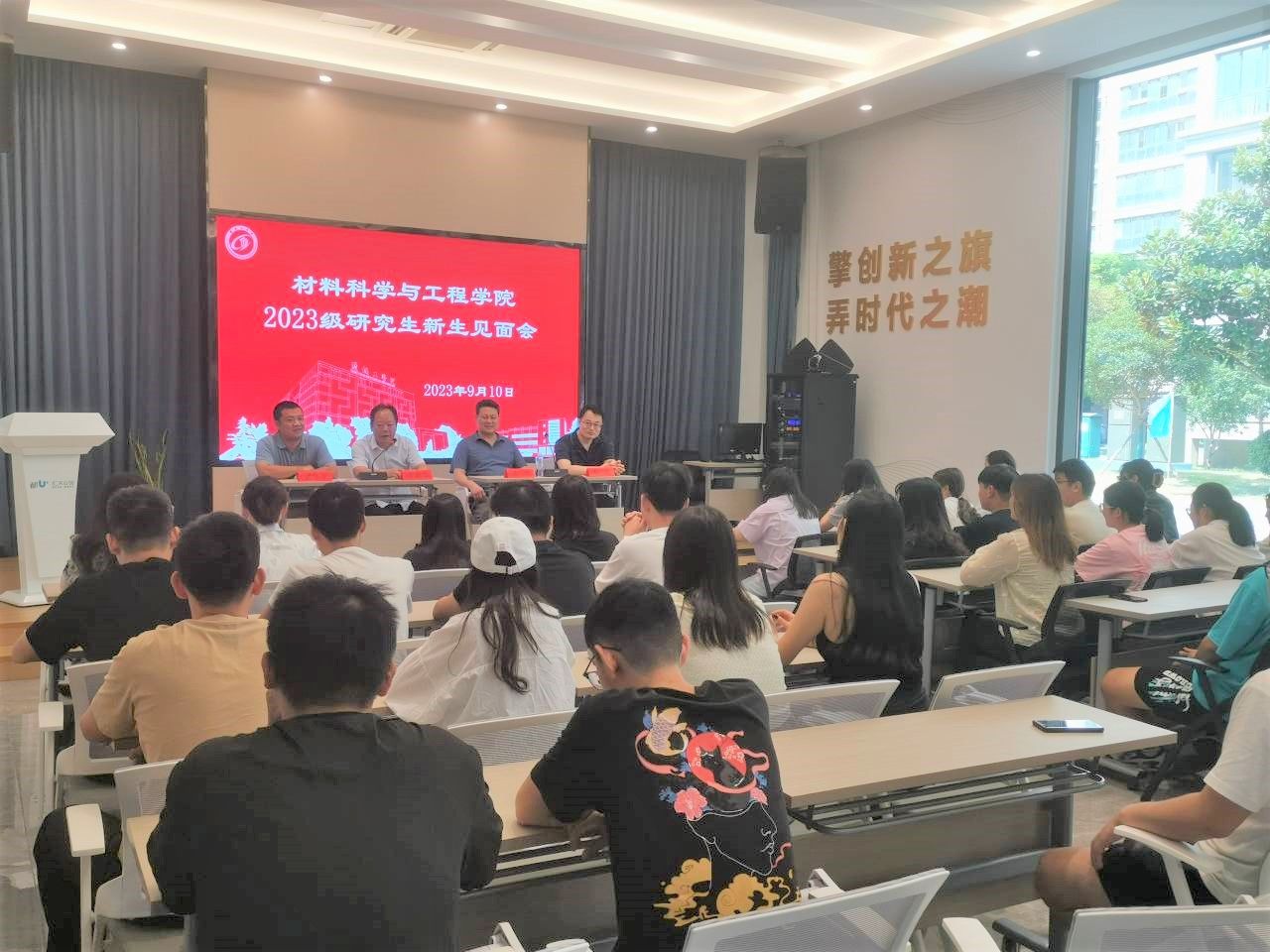 9月10日上午,材料科学与工程学院2023级研究生新生见面会在真人赌博游戏_澳门赌博网-app*官网大学科技园汇文公馆9栋一楼共享中心大厅举行。材料学院党委书记唐浩、副院长罗驹华(主持工作)、副院长诸华军、副书记朱凌、教科研办公室正科级干事宋冬冬及研究生新生代表等40余人参加了见面会,会议由材料学院副院长罗驹华主持。