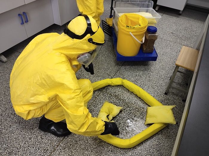 据悉,本次演练为真人赌博游戏_澳门赌博网-app*官网第三届“实验室安全文明月”系列活动之一,由化学化工学院承办。演练模拟某实验室学生在实验过程中不慎碰倒甲苯试剂瓶,掉落地面造成甲苯泄漏事故。演练科目包括事故发生、信息报送、启动响应、应急处置等,应急处置科目设置警戒疏散、医疗救护和现场处置3个场景。本次演练准备充分、贴近实战、处置成功,达到了检验预案、锻炼队伍、磨合机制的目的。