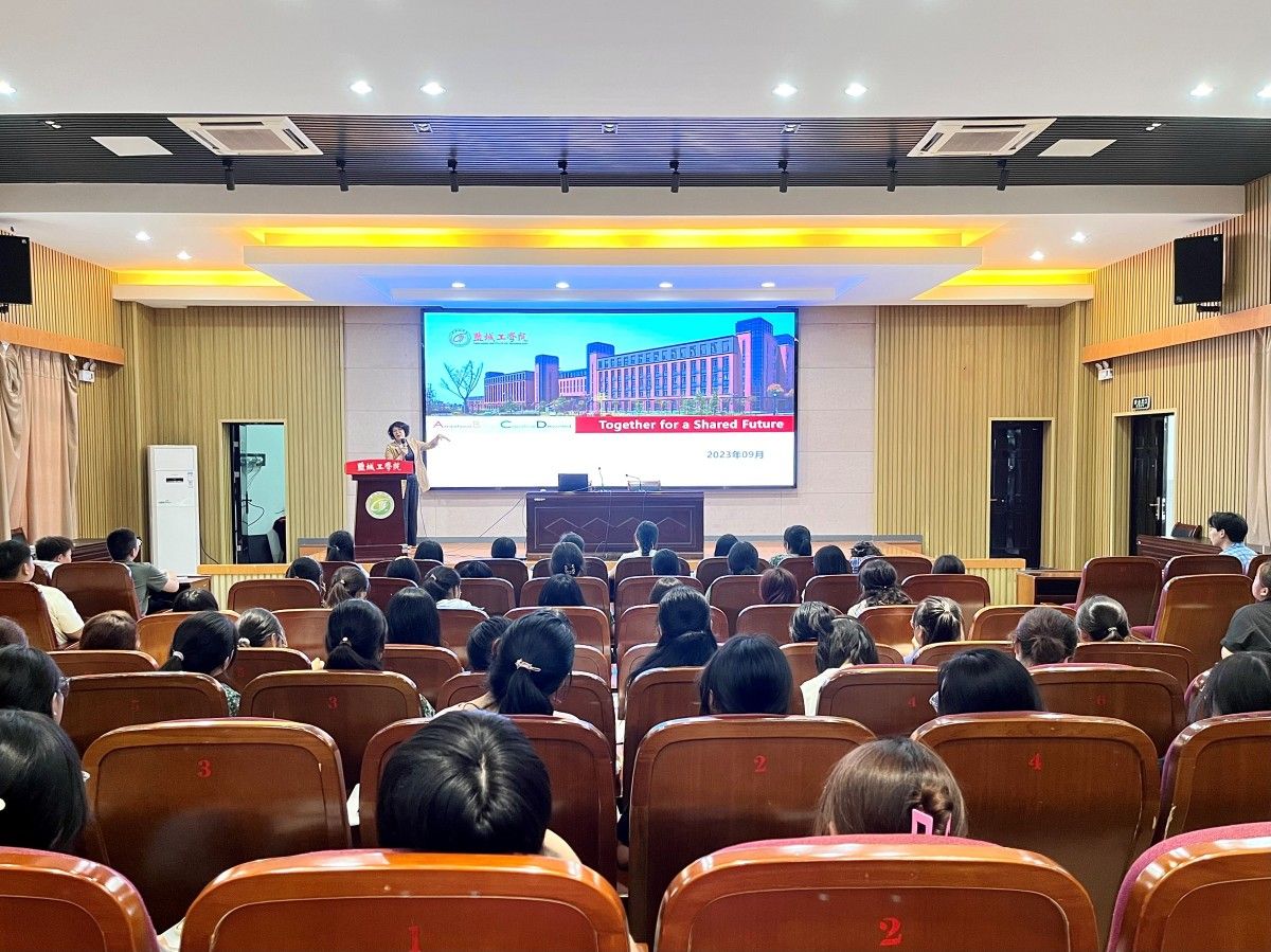 9月12日下午,外国语学院在机械馆报告厅开展2023级新生“大学第一课”学习规划专题讲座。院长齐金花、党总支副书记倪璞和新生辅导员徐栋阳出席本次讲座。讲座由党总支副书记倪璞主持。