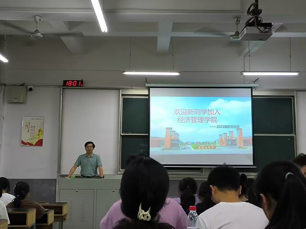 9月10日晚,经管学院在北校区体知楼开展新生入学教育第一次班会。学院党委书记卜树春,学工办主任高加友,新生辅导员胡宗群、赵文捷和全体2023级新生参加。