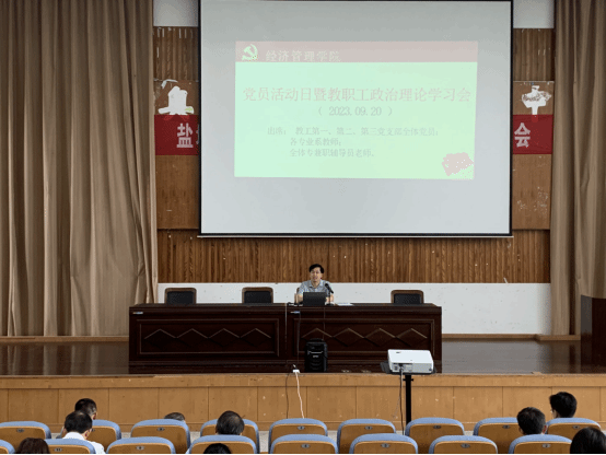 9月20日,经济管理学院党委在南校区仁和楼报告厅组织学习习近平总书记在中共中央政治局第五次集体学习时的重要讲话精神。学院党委书记卜树春主持。学院党委中心组成员,教工第一、二、三党支部全体党员、各专业系教师、专兼职辅导员老师参加。