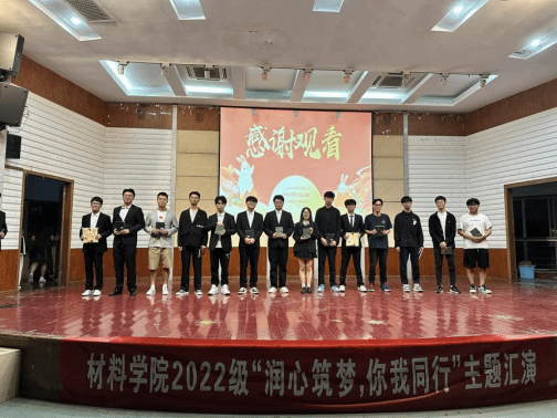 为深入学习党的二十大精神,落实习近平总书记对学生心理健康教育作出的系列重要批示指示精神,深入贯彻江苏省教育厅“润心行动”工作要求,进一步落细落实8月21日全省高校学生心理健康教育工作视频会议精神,材料学院于9月22日晚在知达楼五四报告厅组织开展2022级学生“润心筑梦,你我同行”心理健康教育主题班级汇演,全体2022级学生参加。