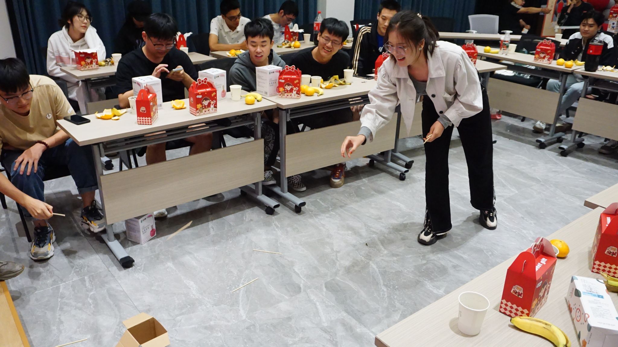 许伟在致辞中向同学们致以节日的诚挚问候,祝愿同学们在盐工度过美好的三年时光。随后领导老师们与同学们就学习,生活等问题进行亲切交谈,对同学们提出的问题进行热情解答。活动现场气氛热烈,充斥着欢声笑语,活动氛围在击鼓传花、你划我猜、巧猜灯谜、知识问答、投壶等游戏中一步步推向高潮。
