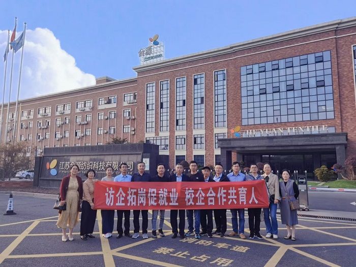为贯彻落实真人赌博游戏_澳门赌博网-app*官网真人赌博游戏_澳门赌博网-app*官网:“访企拓岗”促就业专项行动工作部署,对接用人单位需求,拓宽毕业生就业渠道和资源,促进纺织服装学院毕业生实现更高质量就业,10月11日下午,学院党政领导班子带领专业系主任、毕业班辅导员走访江苏合源纺织科技有限公司,深入企业,加强校企合作,创造就业机会。