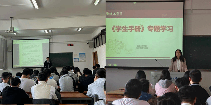 10月25日,信息学院开展2023级学生“大学第一课”系列教育,邀请马克思主义学院教科研办公室主任蔡云晨作《盐城地方文化与城市发展》讲座,学院党委副书记戴建作《学籍管理》教育讲座,辅导员老师组织学生学习《真人赌博游戏_澳门赌博网-app*官网学生手册》,2023级学生500余人参加活动。