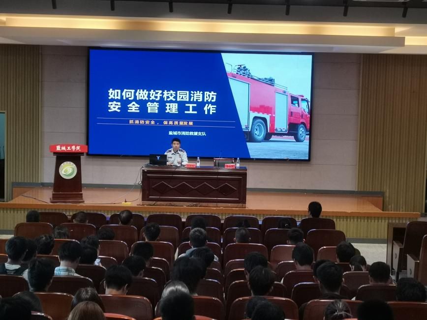 在消防知识培训会上,盐城市消防救援支队二级指挥员张荣成通过一个个真实的案例,结合近年来发生的典型火灾事故,运用图片及视频资料,深入浅出地讲解了消防安全工作的重要性、火险的识别、初期火灾处置、灭火设备的使用方法等消防常识;全面介绍了日常生活中应注意的消防安全细节以及如何扑救初期火灾,火灾中如何自救、逃生等知识。