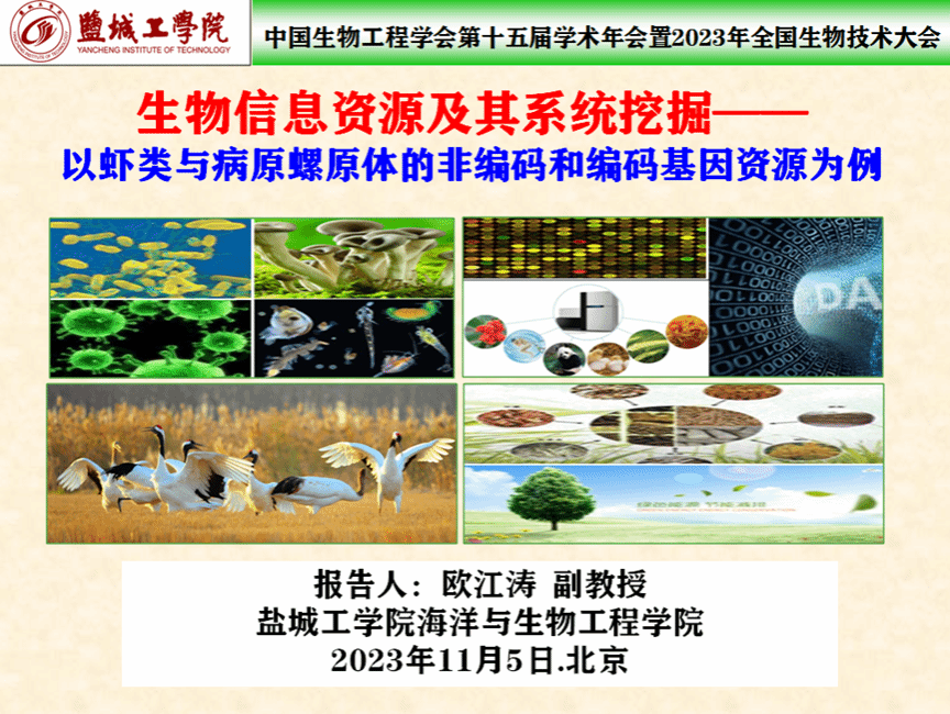 11月3日至5日,中国生物工程学会第十五届学术年会暨2023年全国生物技术大会在北京召开。中国生物工程学会生物资源专业委员会副主任、真人赌博游戏_澳门赌博网-app*官网海洋与生物工程学院欧江涛副教授应邀在大会上作了两场报告。