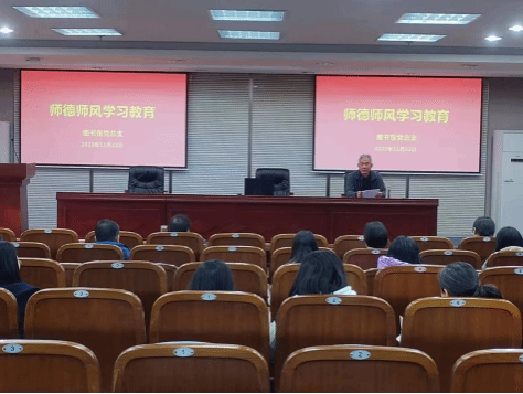 为深入学习贯彻党的二十大精神,落实立德树人根本任务,加强新形势下师德师风教育,11月22日下午,在希望大道校区图书馆五楼报告厅,图书馆党总支开展师德师风专题学习教育。会议由党总支书记花爱军主持,全体教职工参加。