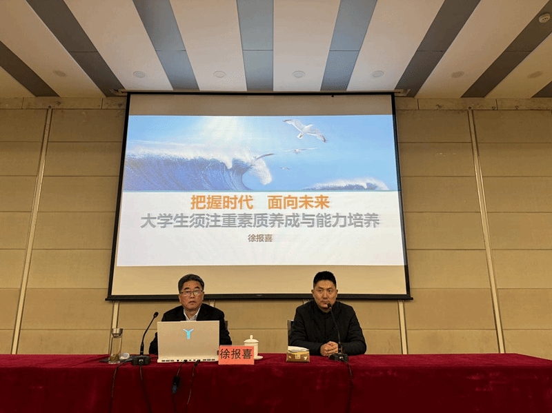 11月28日晚,信息学院在北校区化工楼报告厅举办2023级学生“素质养成与能力培养”专题讲座,邀请校关工委副主任徐报喜作题为《把握时代 面向未来 大学生须注重素质养成与能力培养》的讲座。讲座由信息学院党委副书记戴建主持,辅导员及2023级学生等500多人参加。