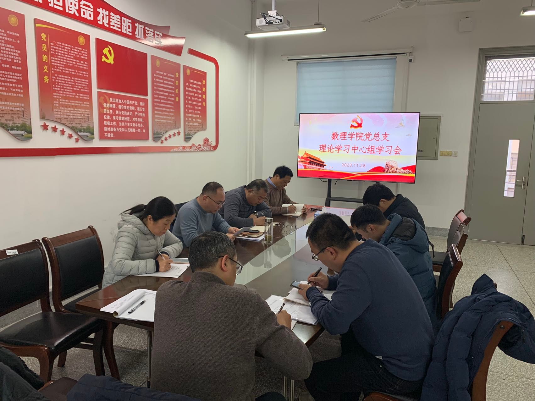 11月28日下午,在希望大道校区博学楼B503党员活动室,数理学院党总支理论学习中心组开展秋学期第三次集体学习研讨。学院党总支书记魏伟华主持会议,理论学习中心组全体成员参加。