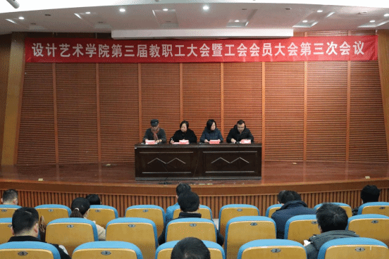 12月13日,在希望大道校区润美楼报告厅,设计艺术学院召开第三届教职工大会暨工会会员大会第三次会议。学院党总支书记胡凌霞,副院长顾晓卉、王文广出席,党总支副书记、分工会主席杨士卿主持,全体教职工、工会会员参加。